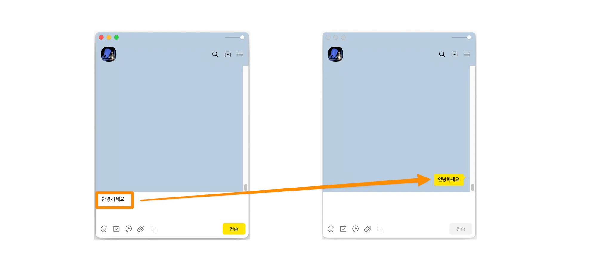 만약 저희가 카카오톡을 이용해 친구에게 메시지를 보낼때는 채팅창에 글을 입력하면 메시지가 전송됩니다.
