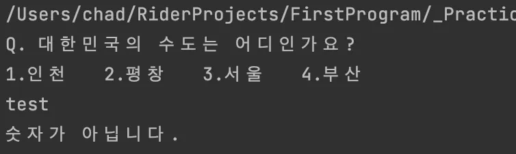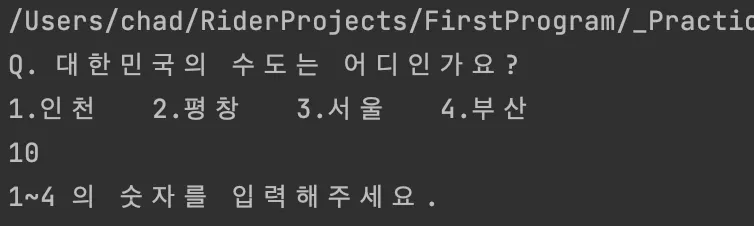 1~4에 해당하는 숫자가 아니라면, “1~4의 숫자를 입력해주세요.”를 출력해주세요.