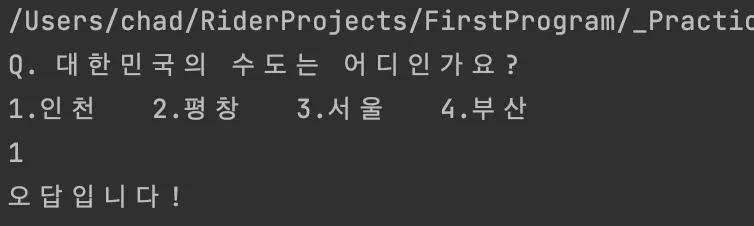 정답이 아니라면 “오답입니다!”를 출력해주세요.