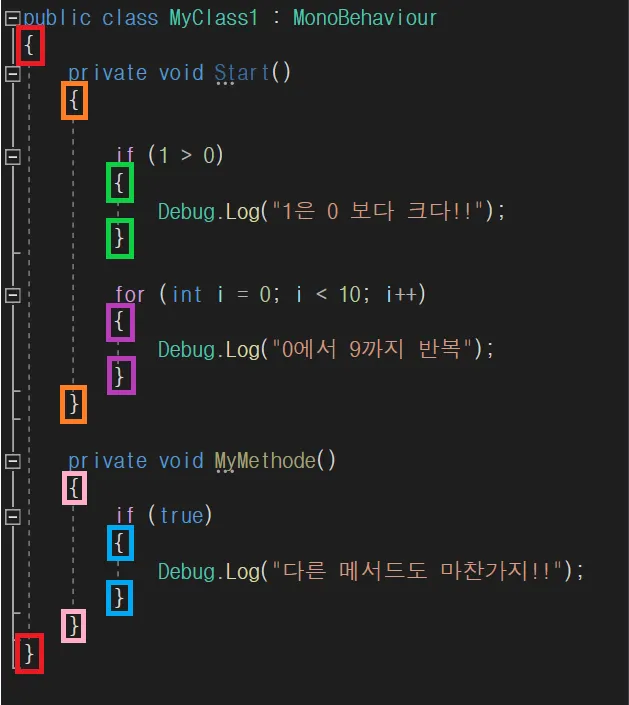 중괄호는 무조건!!! 한쌍으로 있어야 합니다.