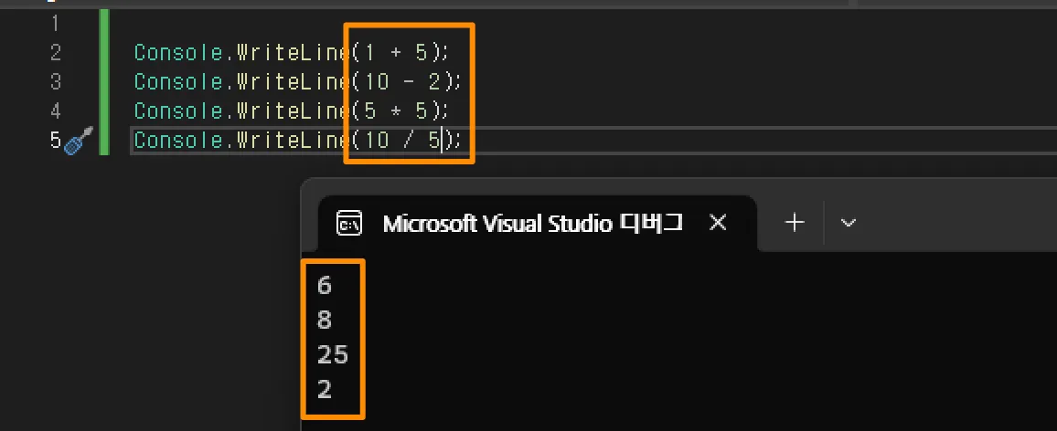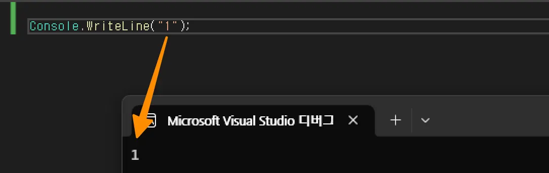 프로그램이 시작하면 표시되게 하는 Console.WriteLine() 안에 “1” 을 입력하시만 하면됩니다.
