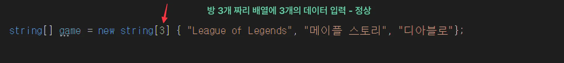 string[] game = new string[3] {"League of Legends", "메이플 스토리", "디아블로"};