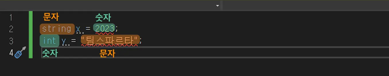 “팀스파르타” 가 들어가있는 x, 2023 이 들어가 있는 y 변수가 생겼습니다.
