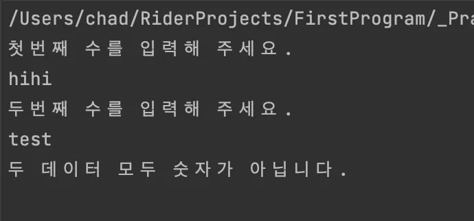 첫번째 수와 두번째 수 모두 숫자 라면 - “두 데이터는 모두 숫자입니다.”